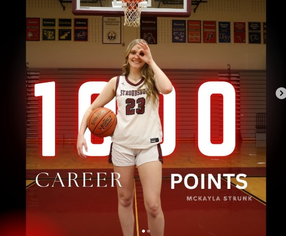 Congratulations to McKayla Strunk on surpassing the 1,000 point mark for Stroudsburg! She also set a school record with 133 made 3-pointers. She needed 26 to reach the milestone and scored 32, including seven 3-pointers against Pocono Mountain East.