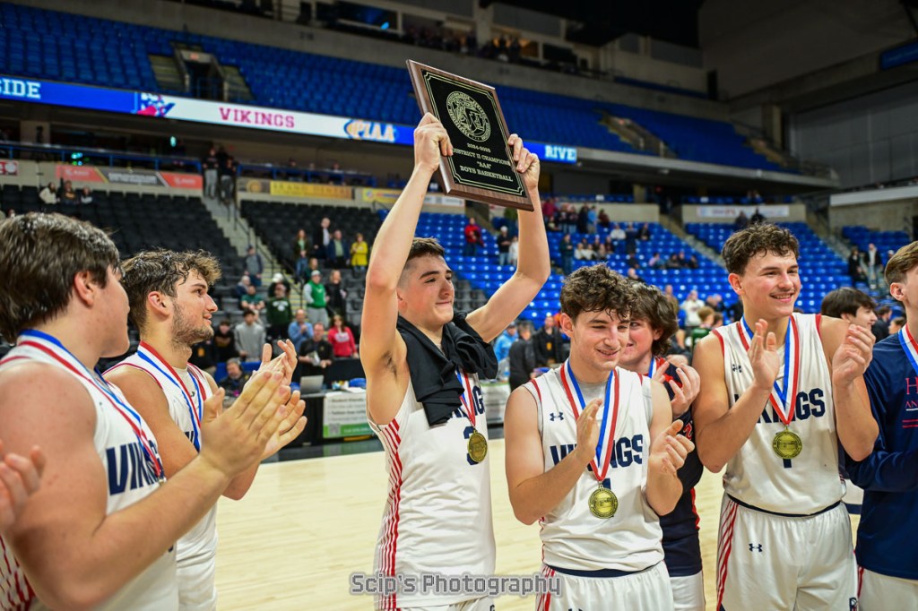 The Riverside Vikings defeated the Holy Cross Crusaders 61-50 at Mohegan Sun Arena on Thursday night to claim a District 2 class 3A title.
