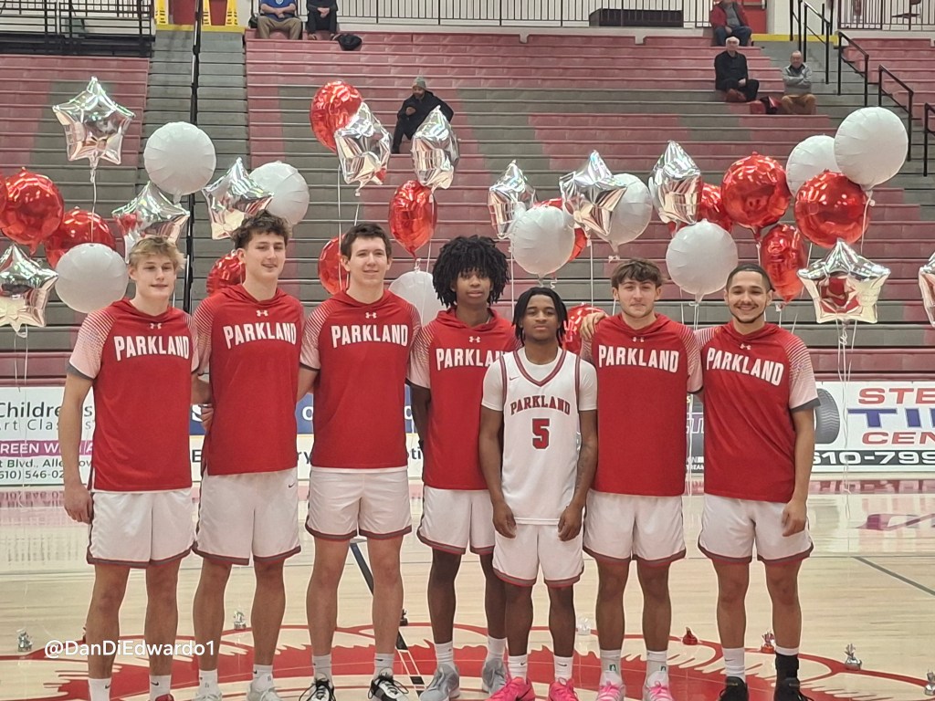 The 4th qtr was about getting playing time for some seniors and subs and both brought a lot of energy to the court, but didn’t change the outcome. Parkland Trojans win on Senior Night 73-50 over the Dieruff Huskies. Trojans improve to 11-5 and face Allen and the Huskies fall to 9-8 and play Whitehall next.